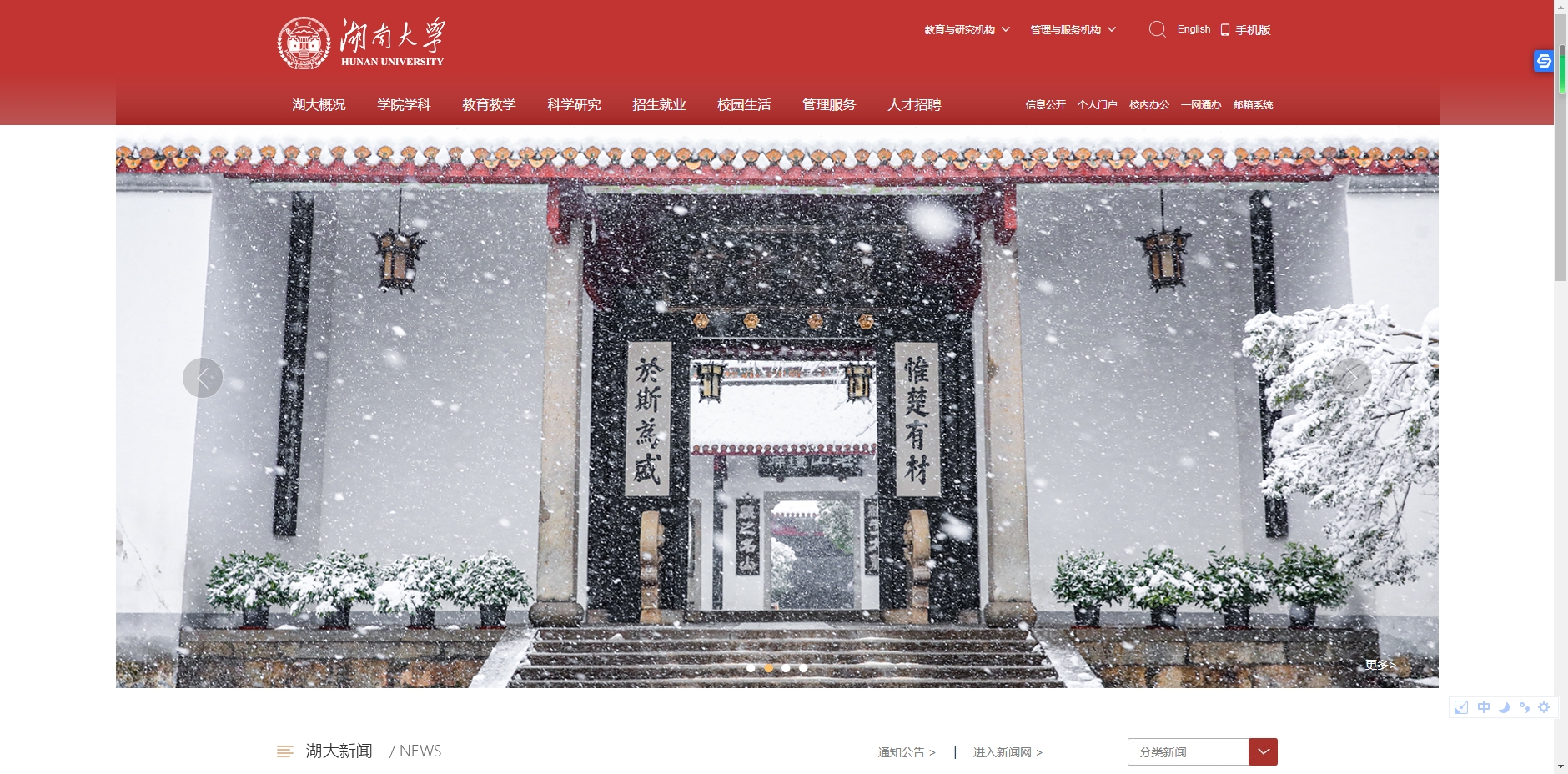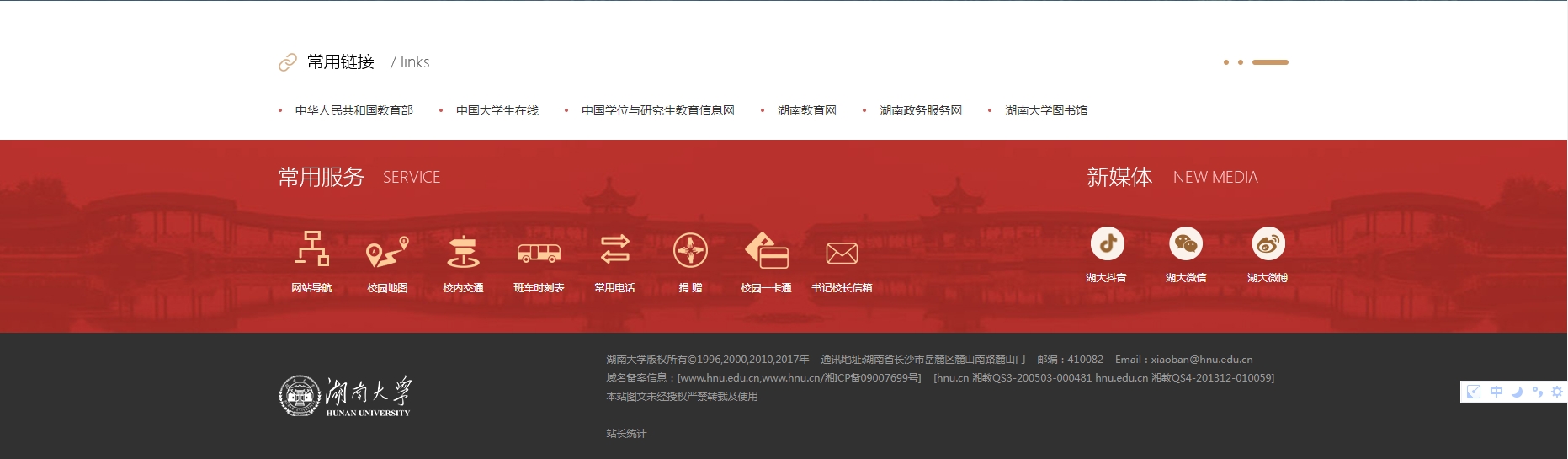 湖南大學位于中國歷史文化名城長沙,校區坐落在湘江之濱、岳麓山下,享有“千年學府,百年名校”之譽。學校辦學歷史悠久、教育傳統優良,是教育部直屬全國重點大學、國家“211工程”“985工程”重點建設高校、國家“世界一流大學”建設高校。
